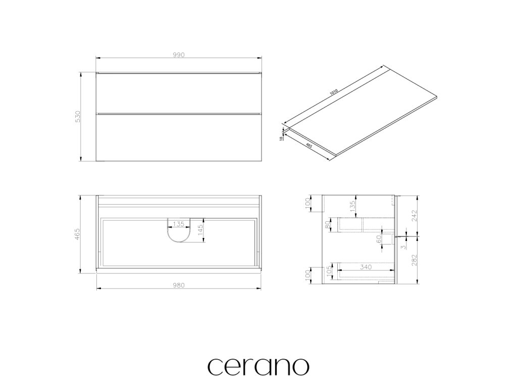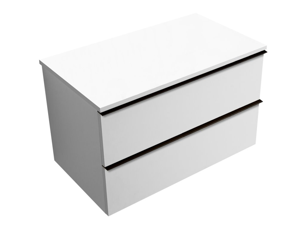CERANO - Kúpeľňová skrinka pod umývadlo s úchytkou/doskou pod umývadlo Velora - 18 mm - biela matná, čierna úchytka - 99x53x46 cm