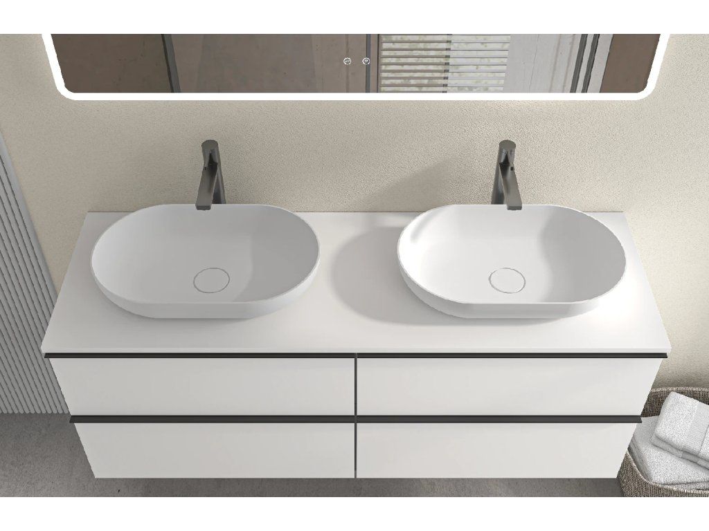 CERANO - Kúpeľňová skrinka pod umývadlo s úchytkou Velora - biela matná, čierna úchytka - 138x53x46, 5 cm