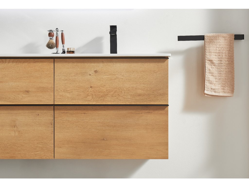 CERANO - Kúpeľňová skrinka pod umývadlo s úchytkou Velora - dub medový, čierna úchytka - 119x53x45, 2 cm