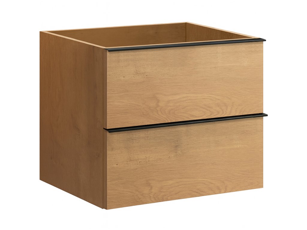 CERANO - Kúpeľňová skrinka pod umývadlo s úchytkou Velora - dub medový, čierna úchytka - 69x53x46 cm