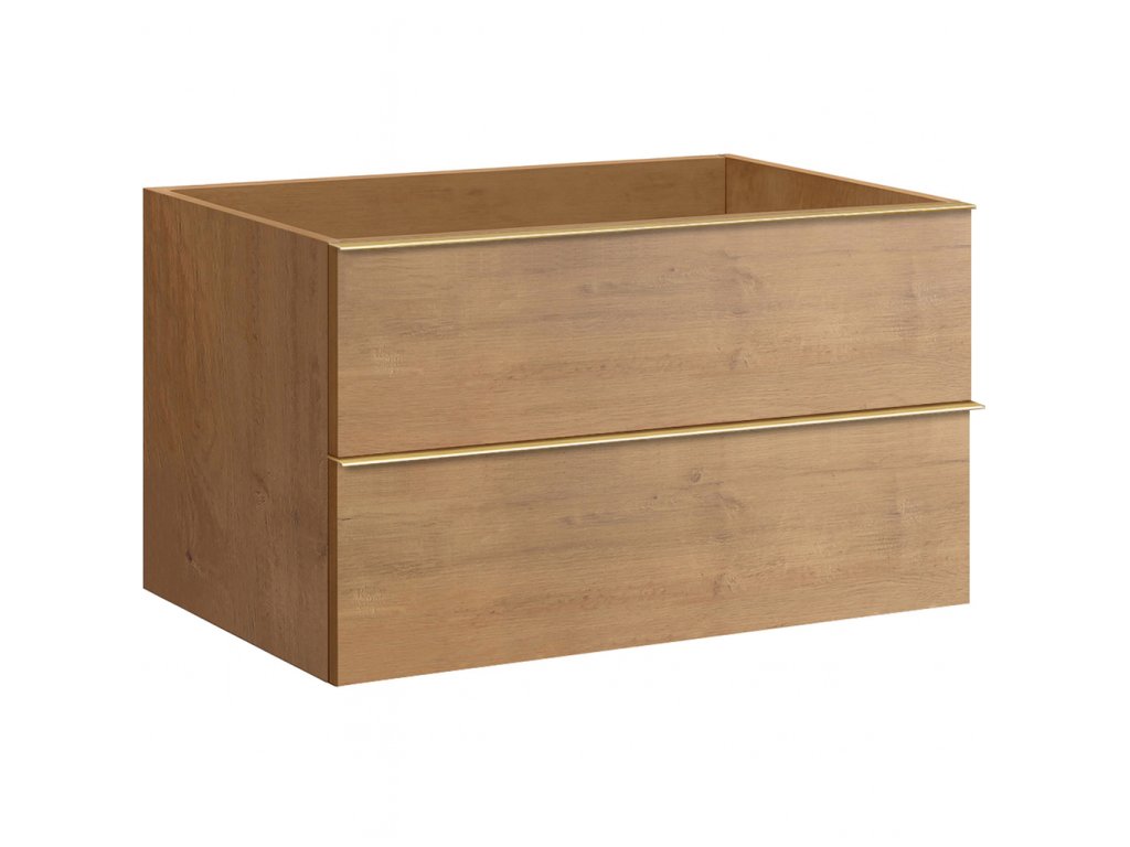 CERANO - Kúpeľňová skrinka pod umývadlo s úchytkou Velora - dub medový, zlatá úchytka - 79x53x46 cm