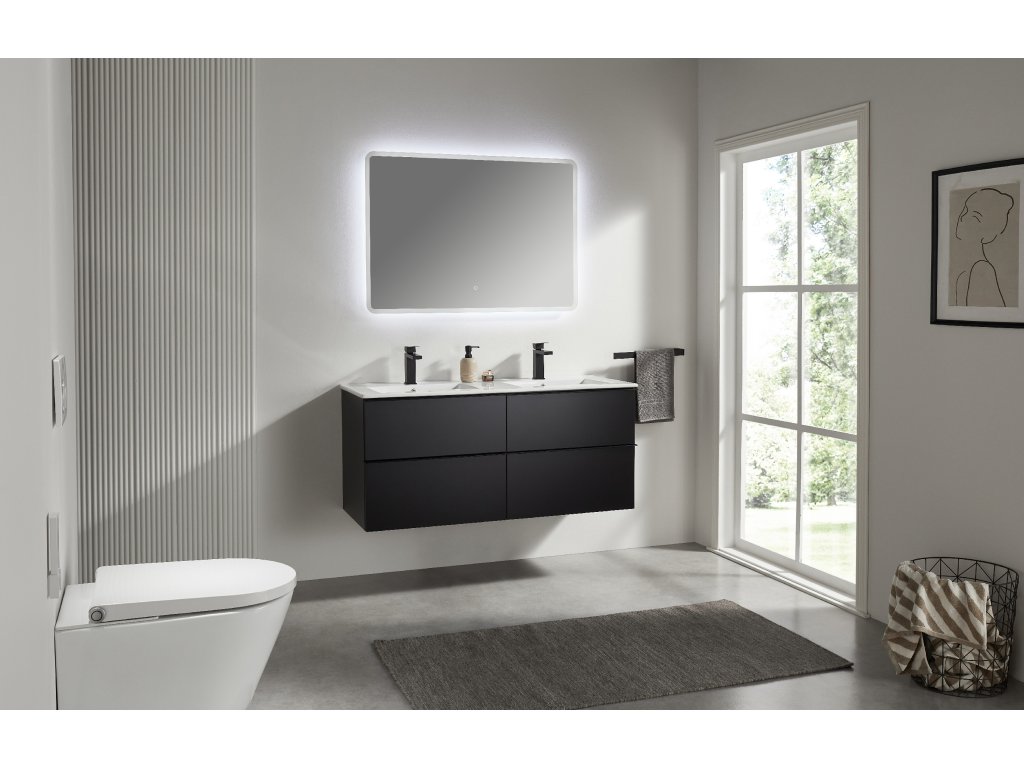 CERANO - Kúpeľňová skrinka pod umývadlo s úchytkou Velora + keramické umývadlo Todo - čierna matná, čierna úchytka - 119x53x45, 2 cm