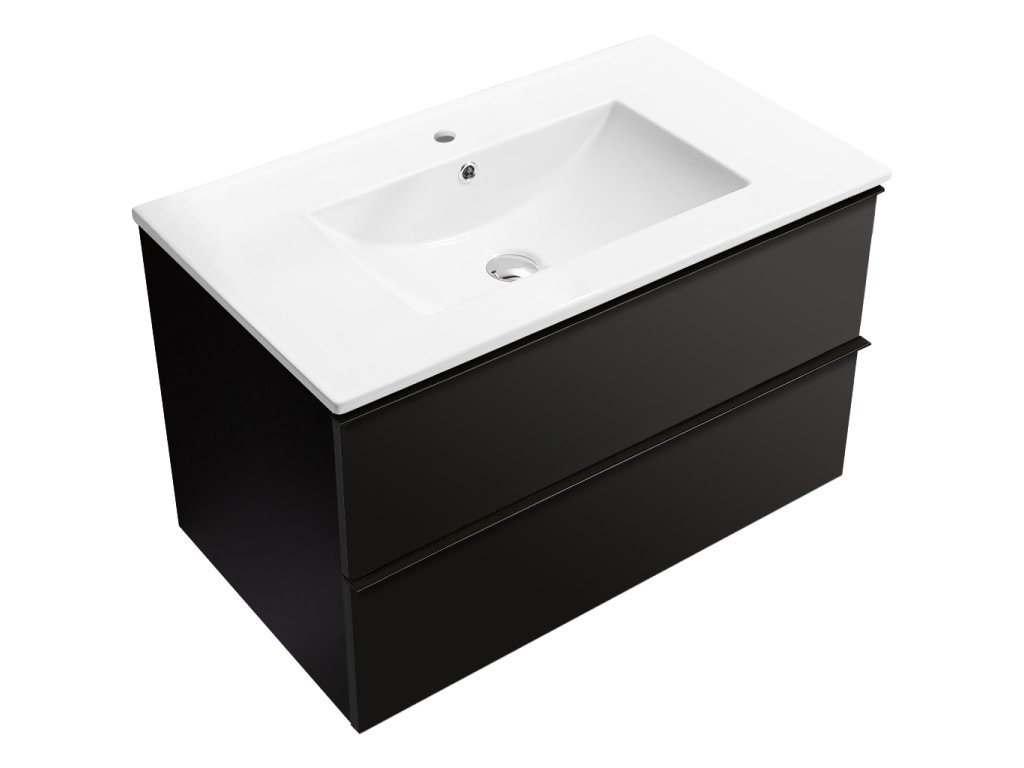 CERANO - Kúpeľňová skrinka pod umývadlo s úchytkou Velora + keramické umývadlo Todo - čierna matná, čierna úchytka - 79x53x46 cm