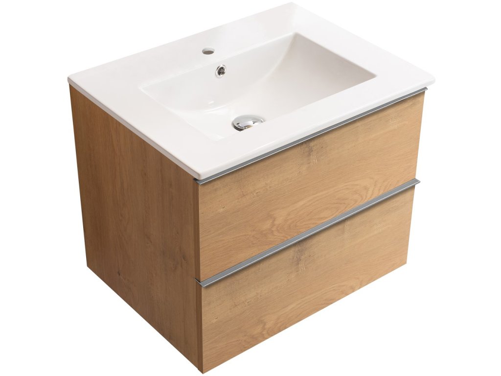 CERANO - Kúpeľňová skrinka pod umývadlo s úchytkou Velora + keramické umývadlo Todo - dub medový, chrómová úchytka - 59x53x46 cm