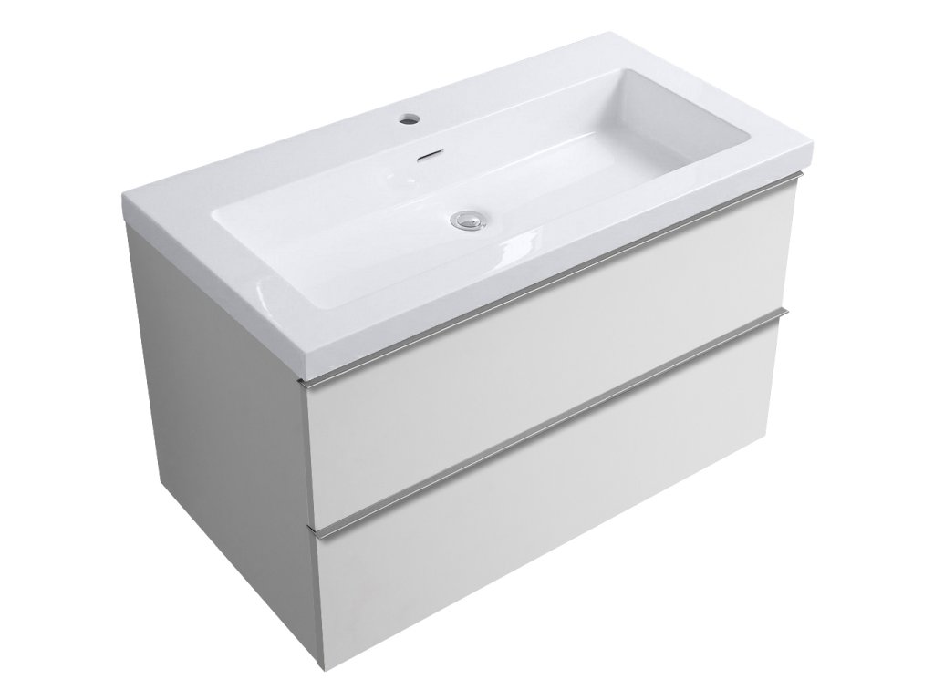 CERANO - Kúpeľňová skrinka Velora - biela lesklá - úchytka chrómová + keramické umývadlo Ovo - biela matná - 79x53x46 cm