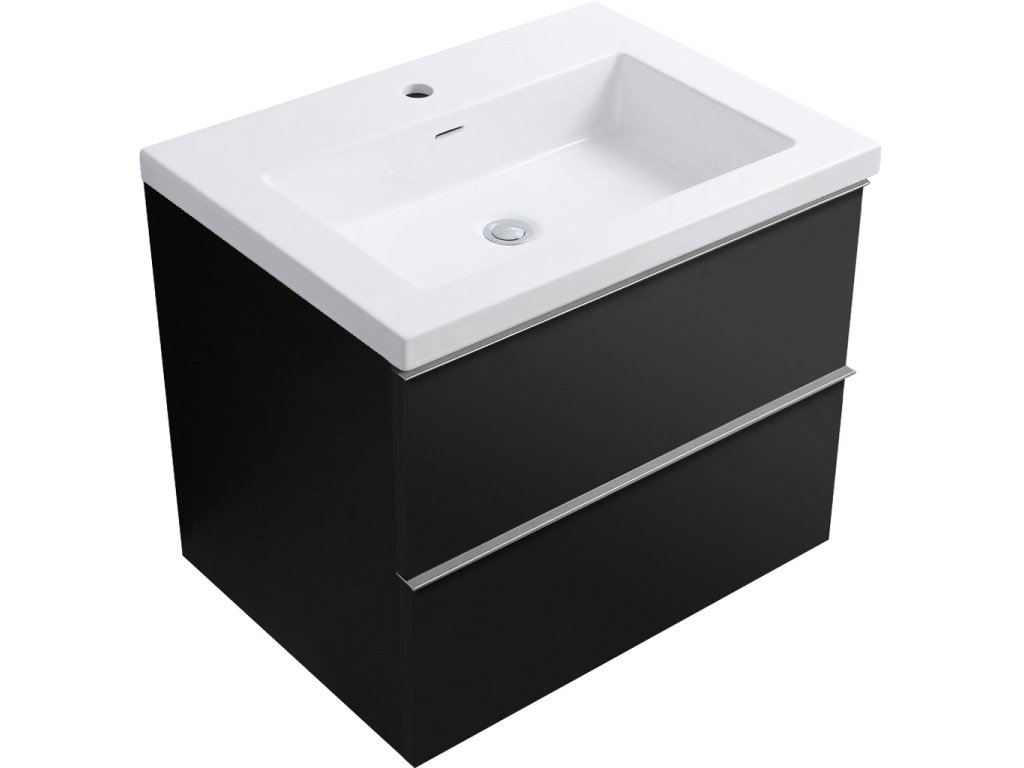 CERANO - Kúpeľňová skrinka Velora - biela lesklá - úchytka chrómová + keramické umývadlo Ovo - čierna matná - 59x53x46 cm
