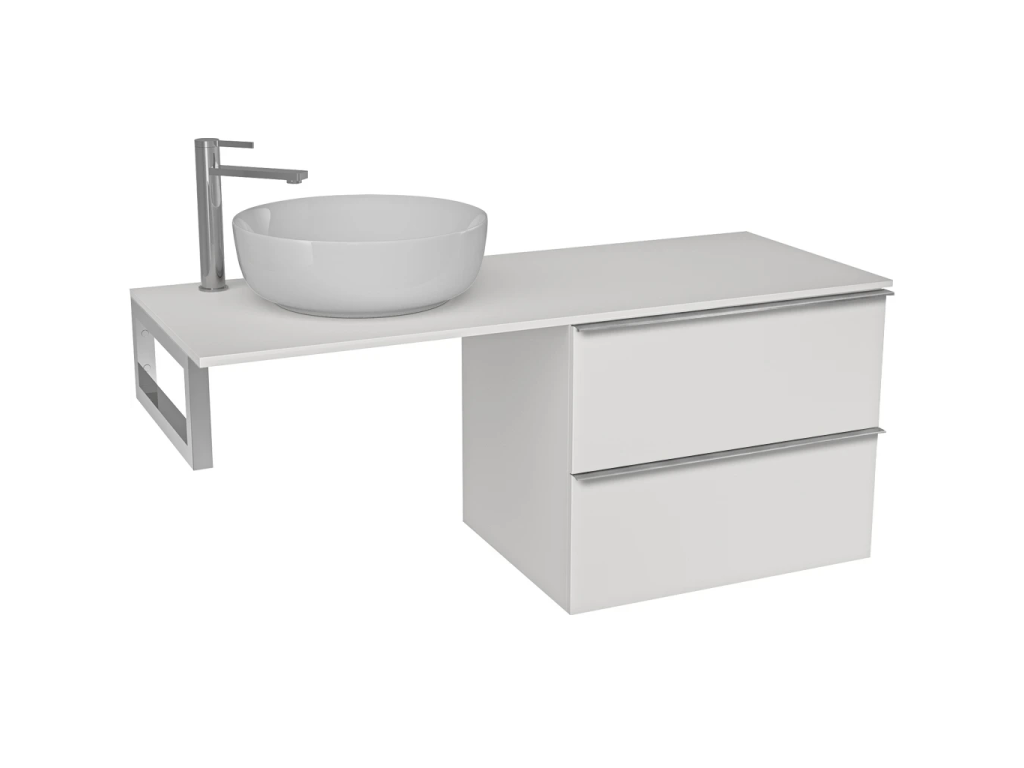 CERANO - Kúpeľňová skrinka Velora - biela matná, úchytka chróm + doska pod umývadlo Navira Slim - 18 mm + konzola chróm - 160x54,8x46,5 cm