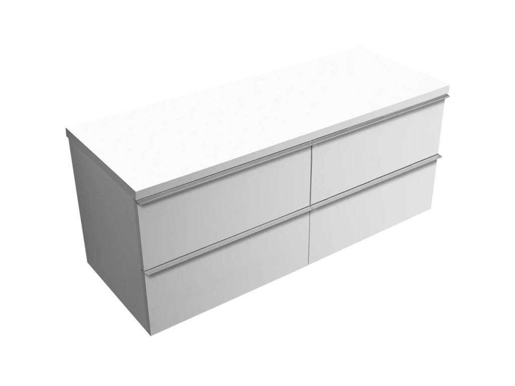 CERANO - Kúpeľňová skrinka Velora - biela matná, úchytka chrómová + doska pod umývadlo Navira Pro - 36 mm - 140x56,6x46,5 cm