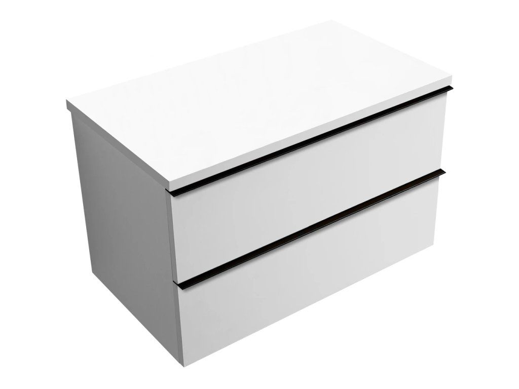 CERANO - Kúpeľňová skrinka Velora - biela matná, úchytka čierna + doska pod umývadlo Navira Pro - 36 mm - 100x56,6x46,5 cm