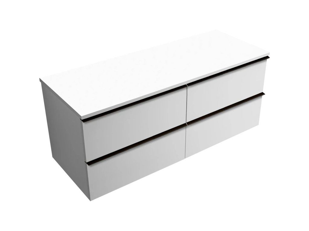 CERANO - Kúpeľňová skrinka Velora - biela matná, úchytka čierna + doska pod umývadlo Navira Slim - 18 mm - 160x54, 8x46, 5 cm