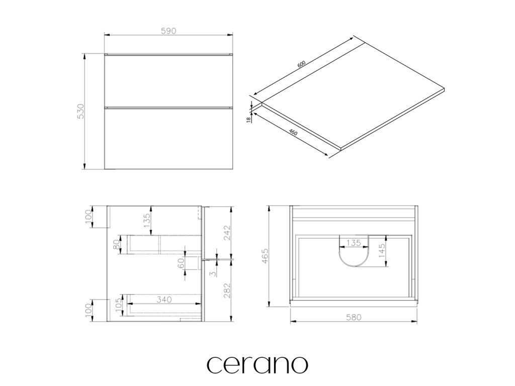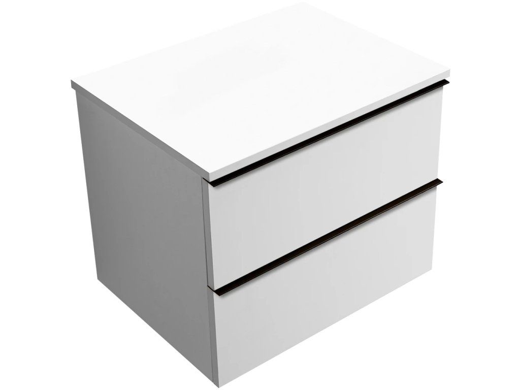 CERANO - Kúpeľňová skrinka Velora - biela matná, úchytka čierna + doska pod umývadlo Navira Slim - 18 mm - 60x54, 8x46, 5 cm