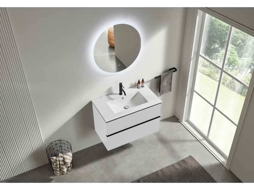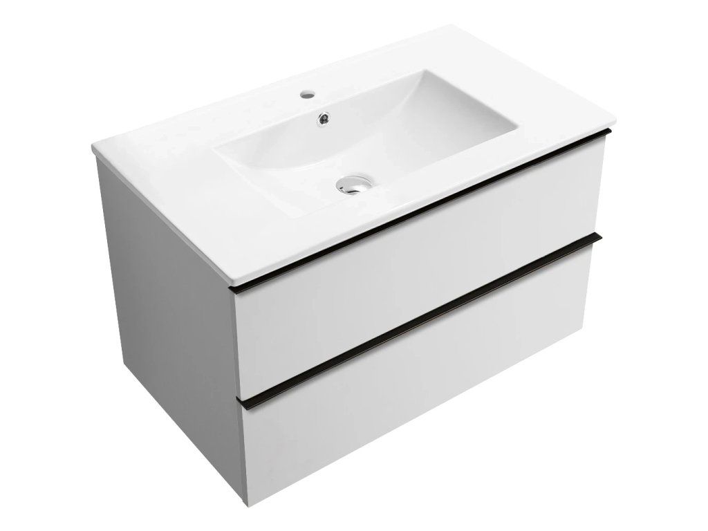 CERANO - Kúpeľňová skrinka Velora - biela matná, úchytka čierna + keramické umývadlo Todo - 81x55x46, 5 cm