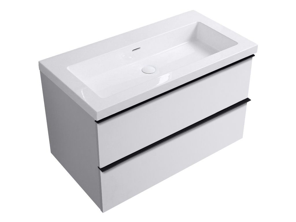 CERANO - Kúpeľňová skrinka Velora - biela matná, úchytka čierna + umývadlo z lit. mramoru Ovo - biela lesklá - 80,5x58x46,5 cm