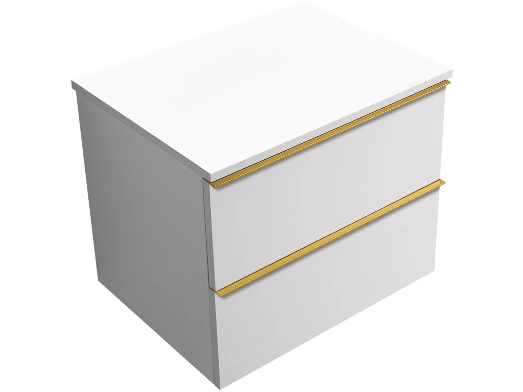CERANO - Kúpeľňová skrinka Velora - biela matná, úchytka zlatá + doska pod umývadlo Navira Slim - 18 mm - 70x54, 8x46, 5 cm