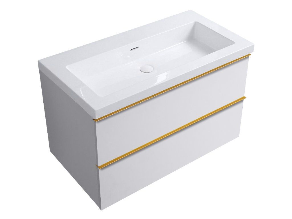 CERANO - Kúpeľňová skrinka Velora - biela matná, úchytka zlatá + umývadlo z lit. mramoru Ovo - biela lesklá - 100,5x58x46,5 cm