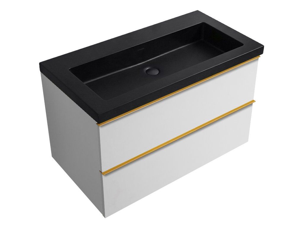 CERANO - Kúpeľňová skrinka Velora - biela matná, úchytka zlatá + umývadlo z lit. mramoru Ovo - čierna matná - 80,5x58x46,5 cm