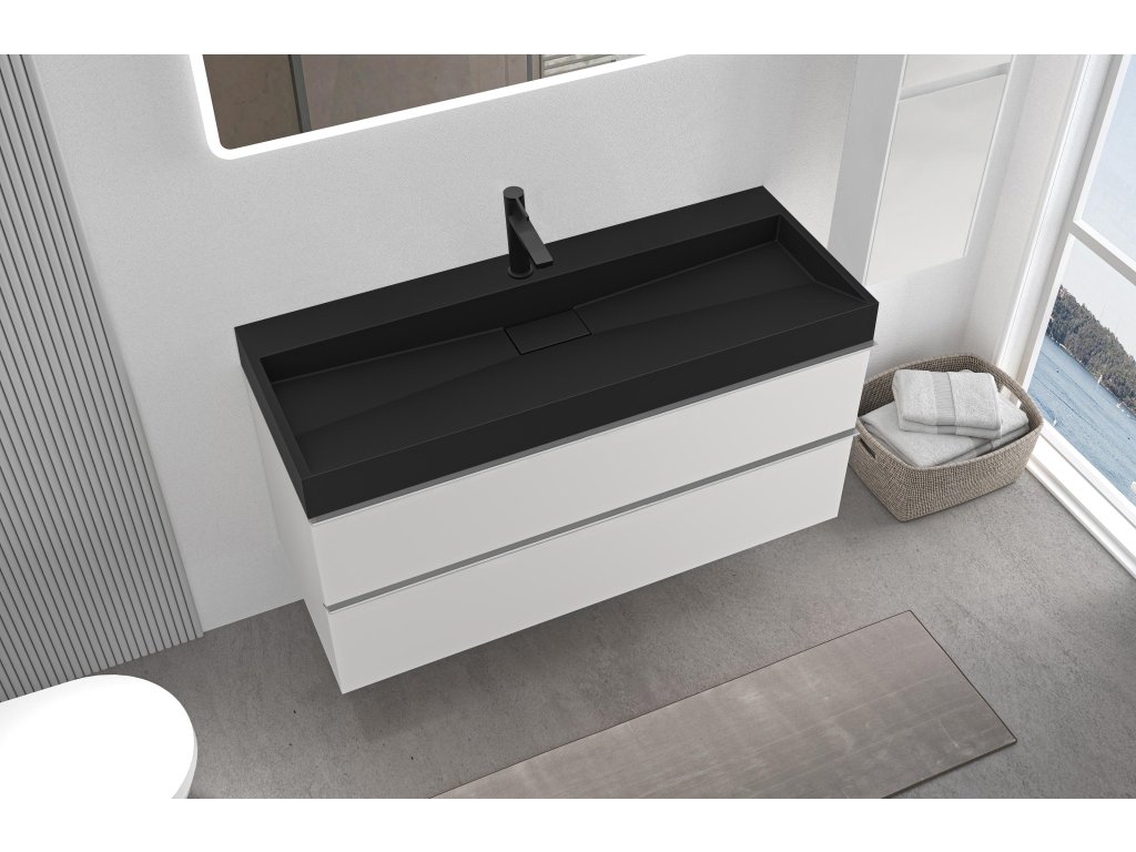 CERANO - Kúpeľňová skrinka Velora - biela matná - úchytka chróm + umývadlo s otvorom pre batériu z liateho mramoru Vita - čierna - 100x53x46 cm