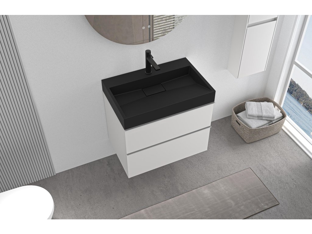 CERANO - Kúpeľňová skrinka Velora - biela matná - úchytka chróm + umývadlo s otvorom pre batériu z liateho mramoru Vita - čierna - 70x53x46 cm