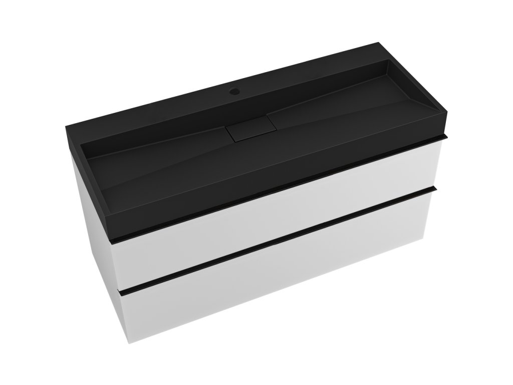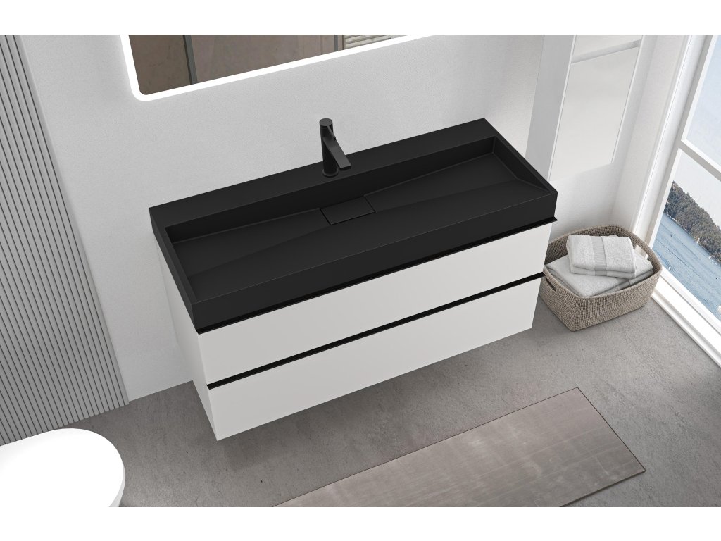 CERANO - Kúpeľňová skrinka Velora - biela matná - úchytka čierna + umývadlo s otvorom pre batériu z liateho mramoru Vita - čierna - 100x53x46 cm