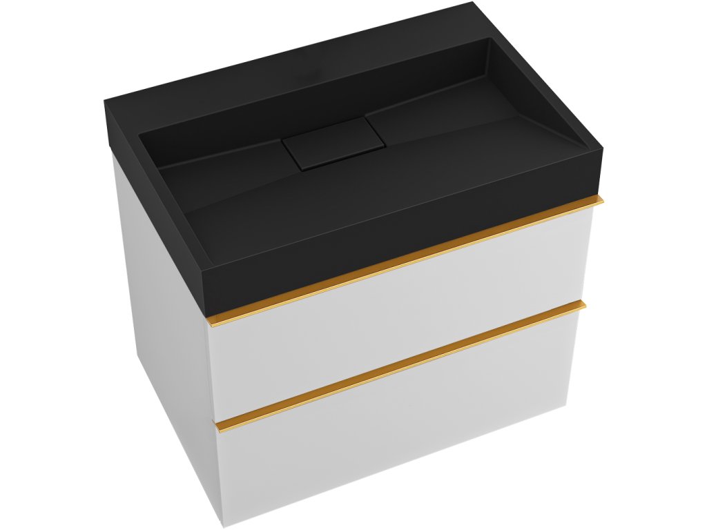 CERANO - Kúpeľňová skrinka Velora - biela matná - úchytka zlatá + umývadlo z liateho mramoru Vita - čierna - 70x53x46 cm