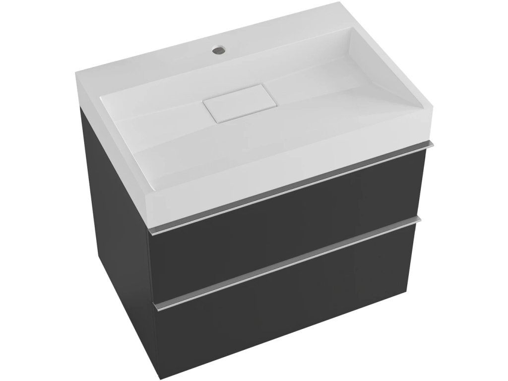CERANO - Kúpeľňová skrinka Velora - čierna matná, úchytka chróm + umývadlo z lit. mramoru s otvorom Vita - biela lesklá - 70x63x46, 5 cm