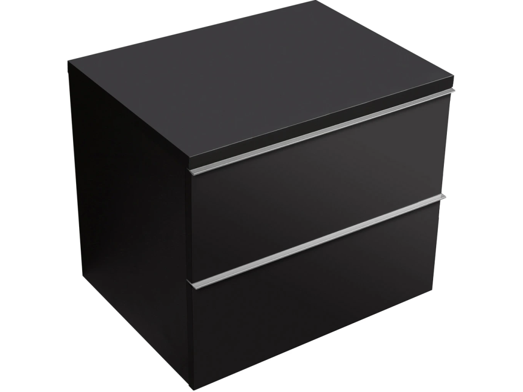 CERANO - Kúpeľňová skrinka Velora - čierna matná, úchytka chrómová + doska pod umývadlo Navira Pro - 36 mm - 60x56,6x46,5 cm