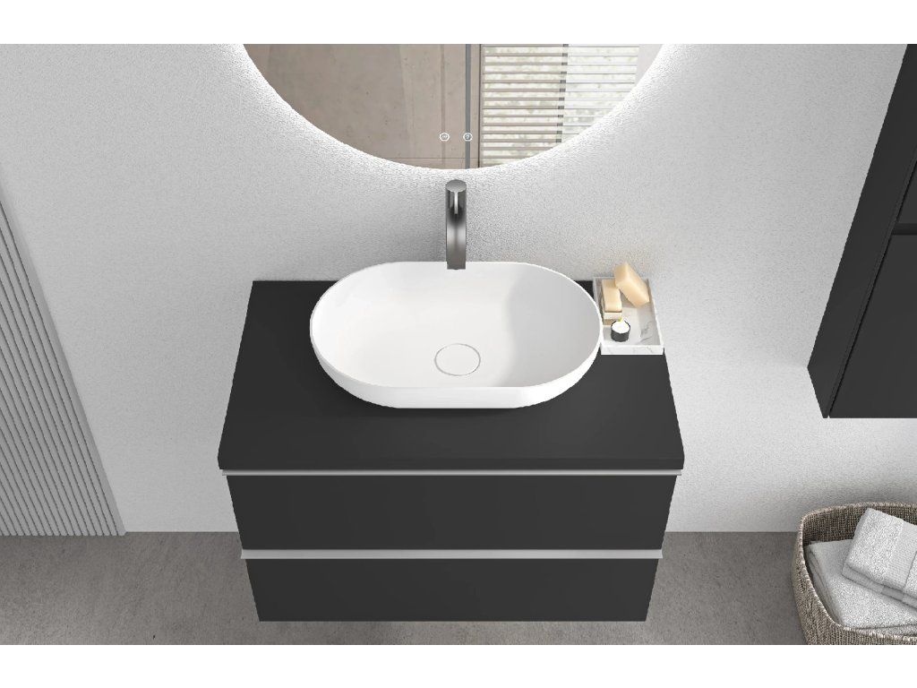 CERANO - Kúpeľňová skrinka Velora - čierna matná, úchytka chrómová + doska pod umývadlo Navira Pro - 36 mm - 70x56,6x46,5 cm