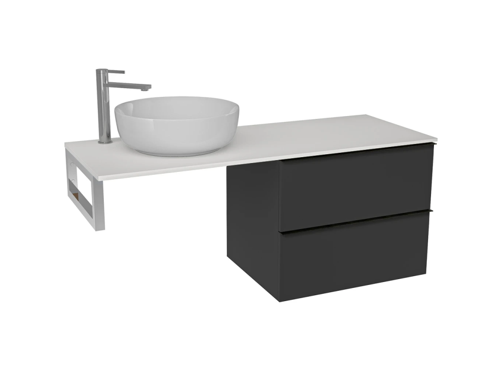 CERANO - Kúpeľňová skrinka Velora - čierna matná, úchytka čierna + doska pod umývadlo z lit. mramoru Elanys - 12 mm + konzola chróm - 140x54,2x46,5 cm