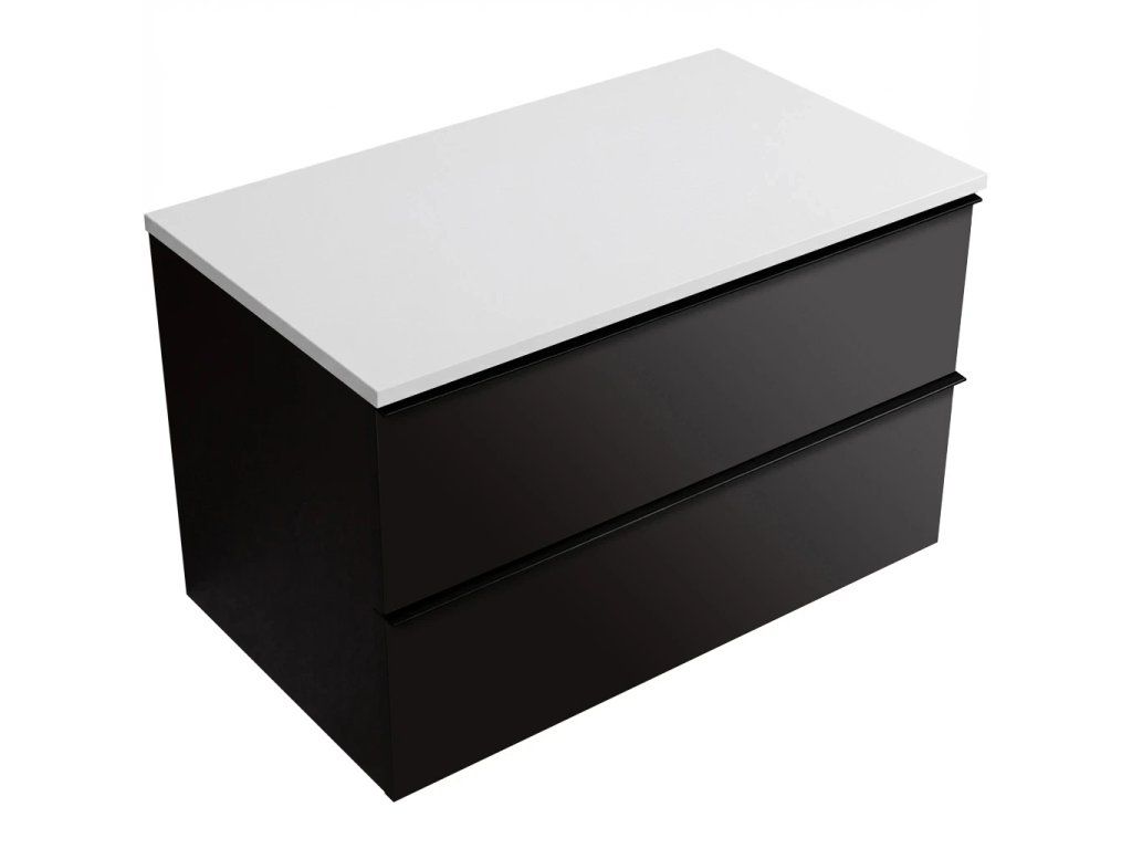 CERANO - Kúpeľňová skrinka Velora - čierna matná, úchytka čierna + doska z lit. mramoru Elanys - 12 mm - biela matná - 100x54,2x46,5 cm