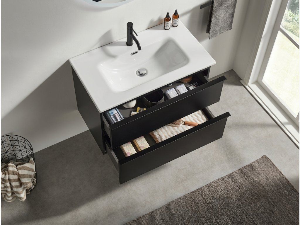 CERANO - Kúpeľňová skrinka Velora - čierna matná, úchytka čierna + keramické umývadlo Novo - biela lesklá - 81x54,5x46,5 cm