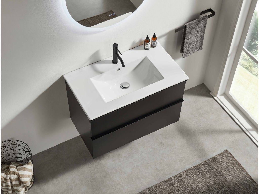 CERANO - Kúpeľňová skrinka Velora - čierna matná, úchytka čierna + keramické umývadlo Todo - 71x55x46, 5 cm