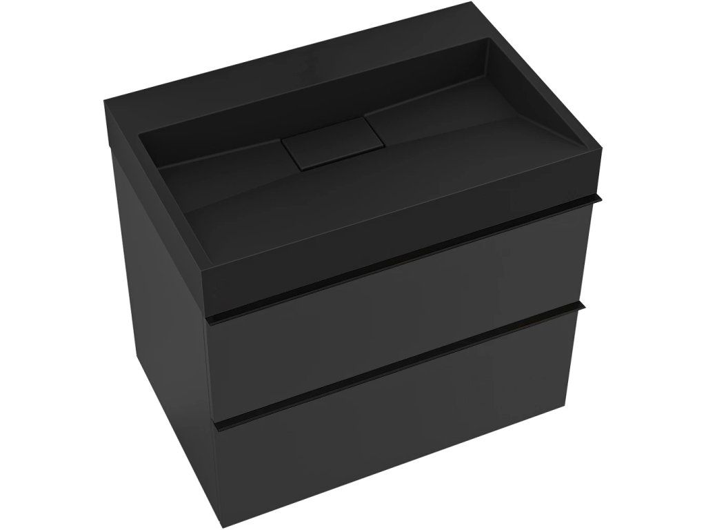 CERANO - Kúpeľňová skrinka Velora - čierna matná, úchytka čierna + umývadlo z lit. mramoru Vita - čierna matná - 70x63x46, 5 cm