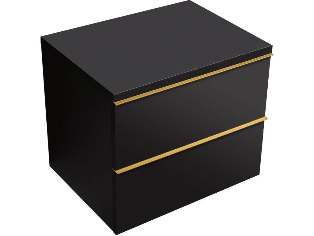 CERANO - Kúpeľňová skrinka Velora - čierna matná, úchytka zlatá + doska pod umývadlo Navira Pro - 36 mm - 60x56,6x46,5 cm