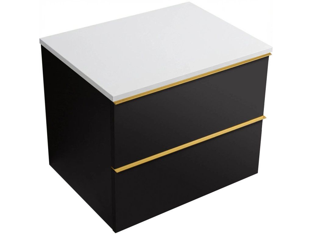 CERANO - Kúpeľňová skrinka Velora - čierna matná, úchytka zlatá + doska z lit. mramoru Elanys - 12 mm - biela matná - 70x54,2x46,5 cm