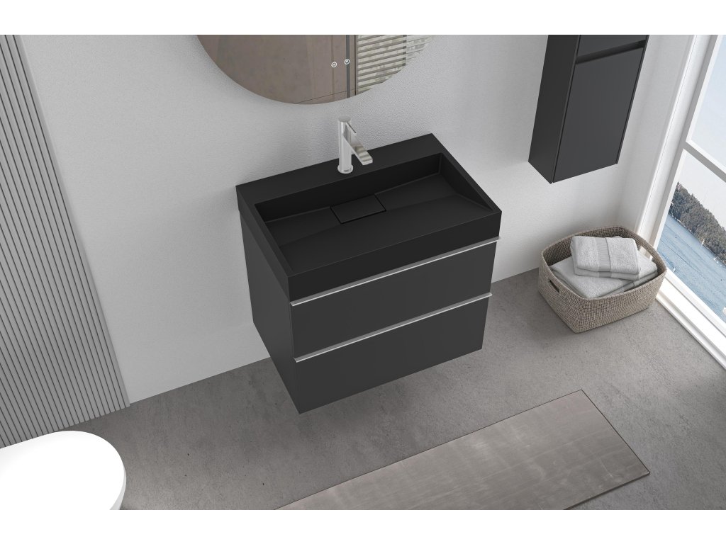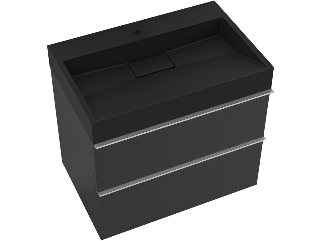 CERANO - Kúpeľňová skrinka Velora - čierna matná - úchytka chróm + umývadlo s otvorom pre batériu z liateho mramoru Vita - čierna - 70x53x46 cm