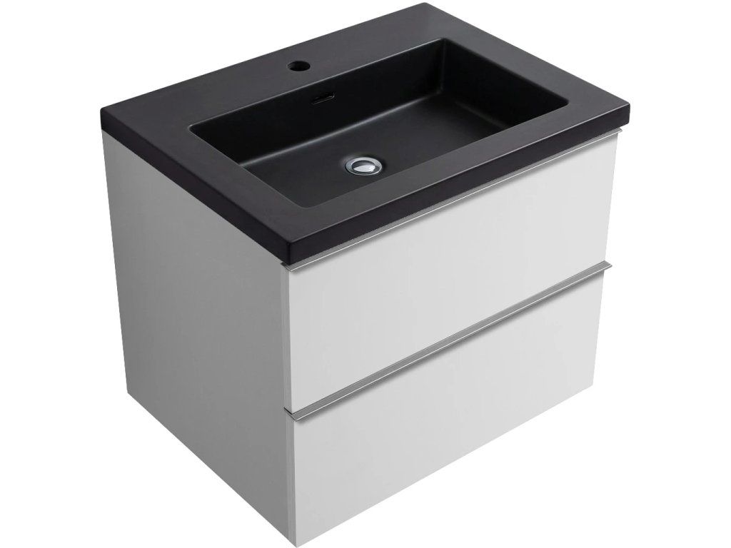 CERANO - Kúpeľňová skrinka Velora - čierna matná - úchytka chrómová + umývadlo z lit. Mramoru Ovo - biela matná - 69x53x46 cm