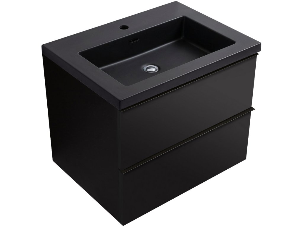 CERANO - Kúpeľňová skrinka Velora - čierna matná - úchytka čierna + keramické umývadlo Ovo - čierna matná - 69x53x46 cm