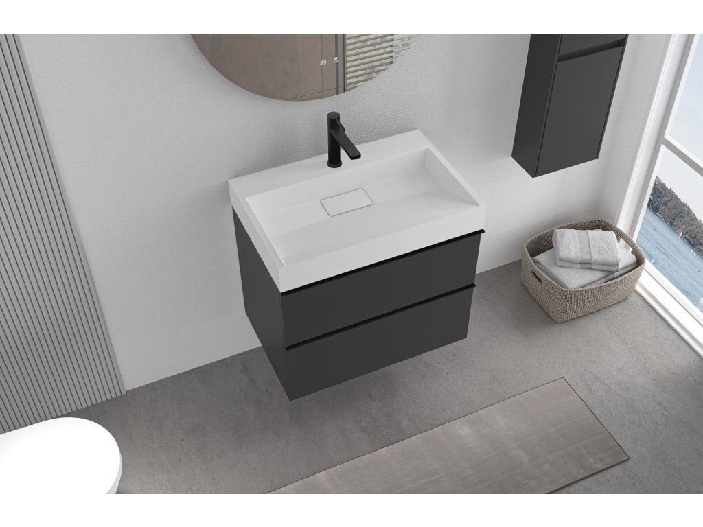 CERANO - Kúpeľňová skrinka Velora - čierna matná - úchytka čierna + umývadlo s otvorom pre batériu z liateho mramoru Vita - biela lesklá - 70x53x46 cm
