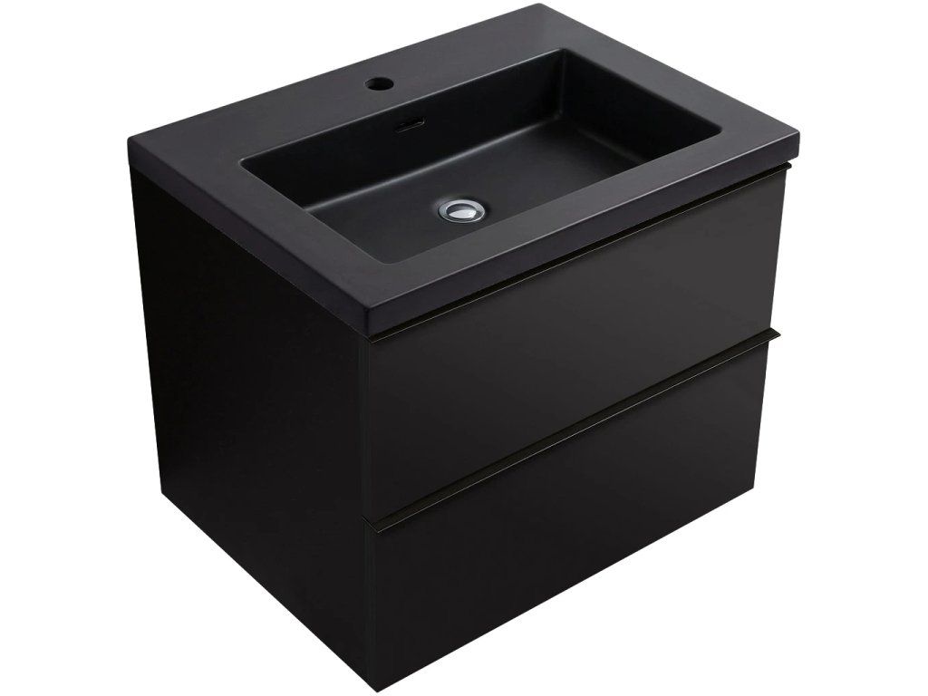 CERANO - Kúpeľňová skrinka Velora - čierna matná - úchytka čierna + umývadlo z lit. Mramoru Ovo - čierna matná - 59x53x46 cm