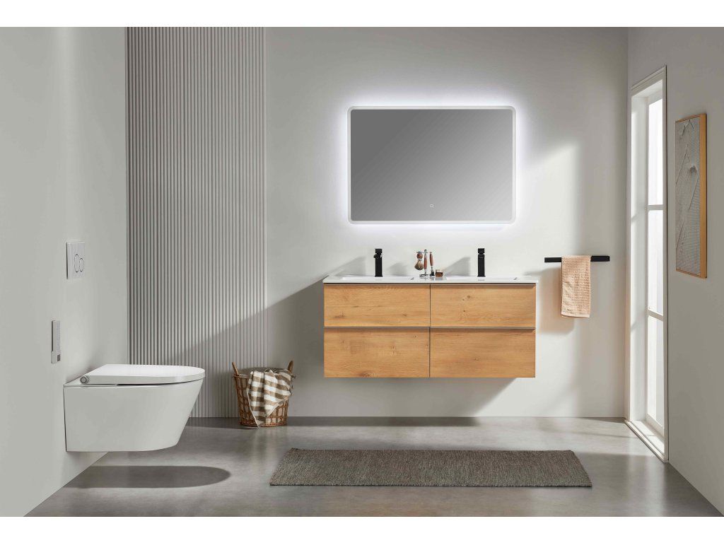 CERANO - Kúpeľňová skrinka Velora - dub medový, úchytka chróm + keramické umývadlo Todo - 121x55x46, 5 cm