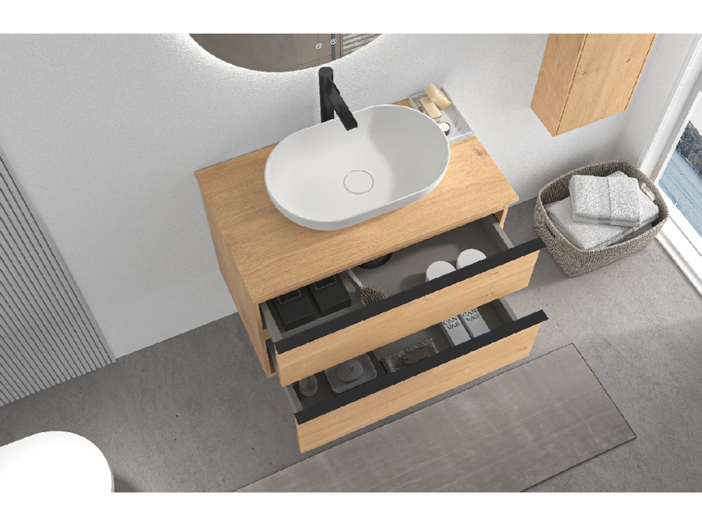 CERANO - Kúpeľňová skrinka Velora - dub medový, úchytka čierna + doska pod umývadlo Navira Slim - 18 mm - 80x54, 8x46, 5 cm