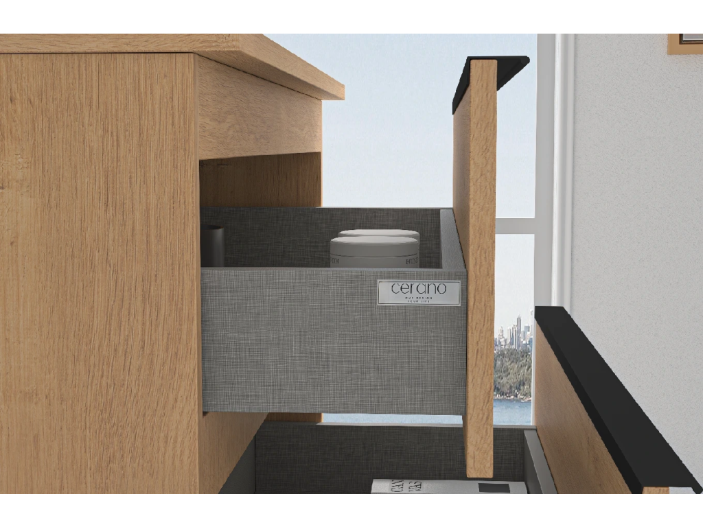 Vďaka integrovanému soft-close mechanizmu sa dvierka a zásuvky zatvárajú plynulo a ticho – hydraulický doraz tlmí náraz, zabraňuje búchaniu a znižuje opotrebenie, takže nábytok vydrží dlhšie a používanie je pohodlné.