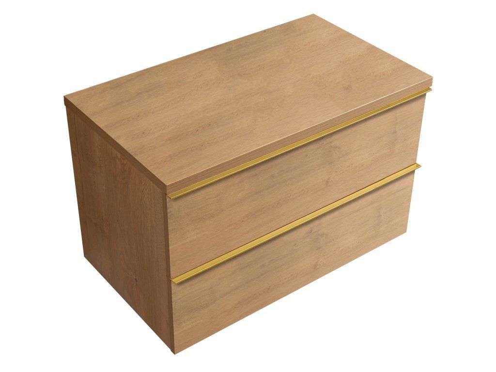 CERANO - Kúpeľňová skrinka Velora - dub medový, úchytka zlatá + doska pod umývadlo Navira Pro - 36 mm - 100x56,6x46,5 cm
