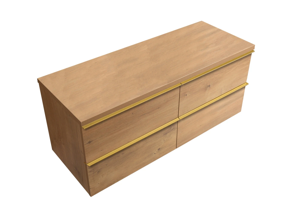 CERANO - Kúpeľňová skrinka Velora - dub medový, úchytka zlatá + doska pod umývadlo Navira Pro - 36 mm - 140x56,6x46,5 cm