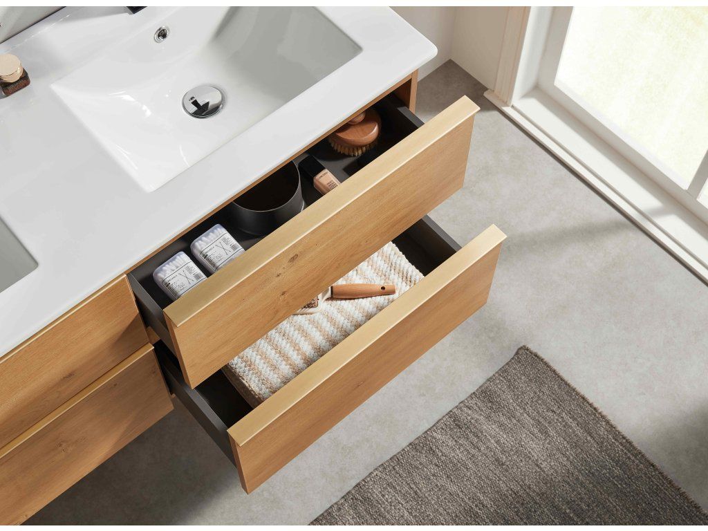 Vďaka úložnému priestoru je tento kúpeľňový nábytok veľmi praktickým pomocníkom do každej kúpeľne. Kombinácia inovatívneho a spoľahlivého riešenia, na ktorom si naša značka zakladá, dala vzniknúť kvalitnému a zároveň veľmi modernému kúpeľňovému nábytku.