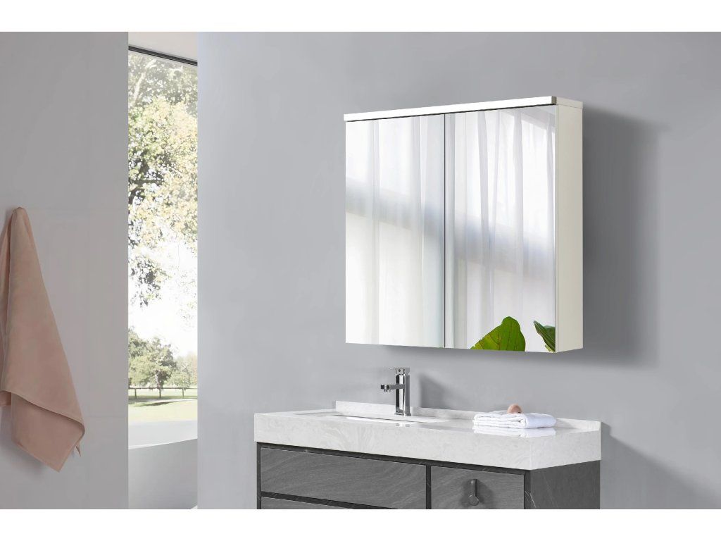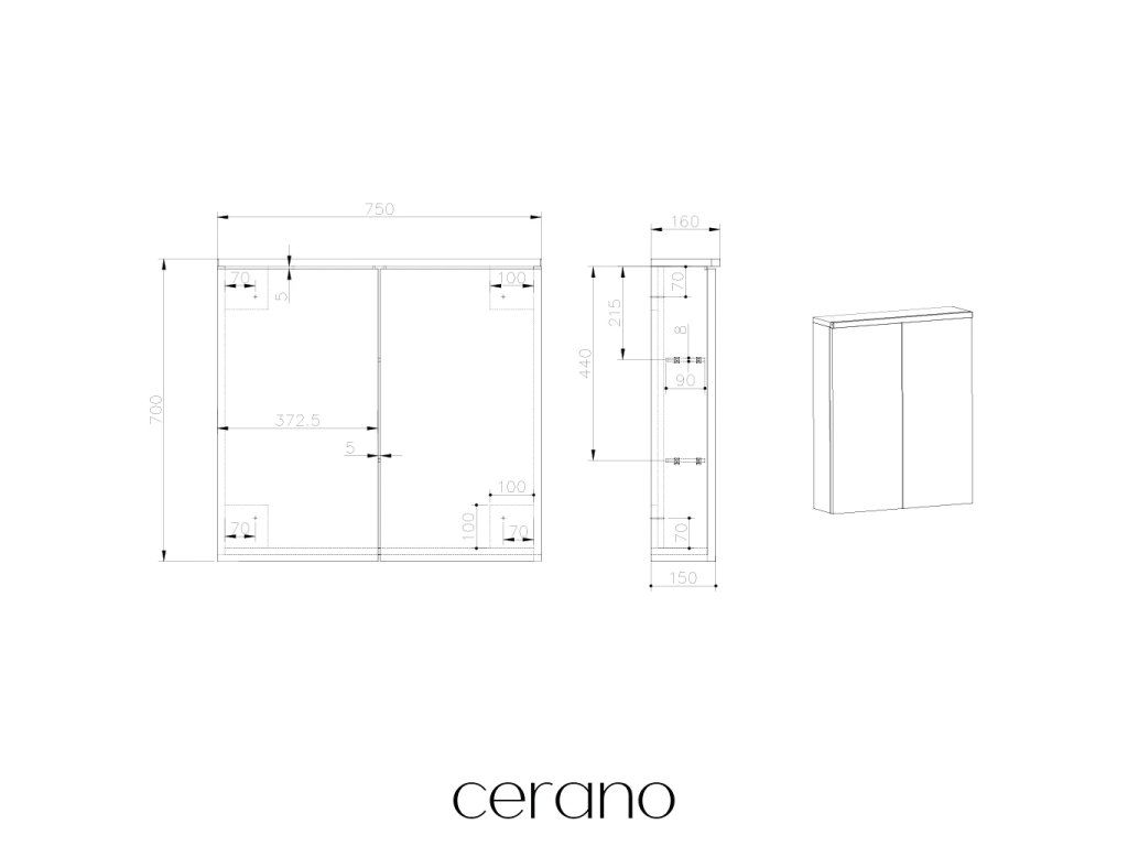 CERANO - Kúpeľňová zrkadlová skrinka s LED osvetlením Avia - biela matná - 75x70x16, 5 cm