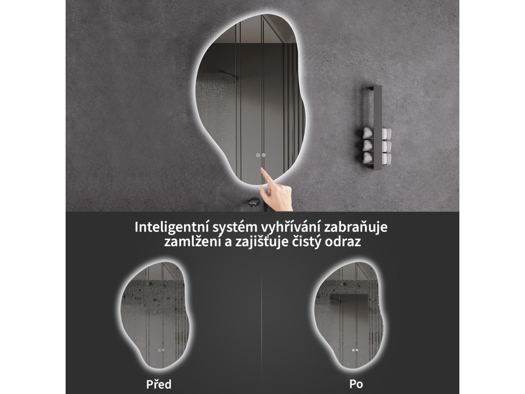 Zrkadlo je vybavené LED osvetlením s nastaviteľnou farbou svetla – od 3000 K (teplá) do 6500 K (Neutrálna). Prepínanie farieb jednoducho ovládate dotykovým tlačidlom na ploche zrkadla. Poskytuje intenzívne a jasné svetlo pre detailnú starostlivosť aj príjemné, jemné osvetlenie na relaxáciu. Vďaka širokému rozsahu teploty farieb tak ľahko prispôsobíte atmosféru aktuálnej potrebe.