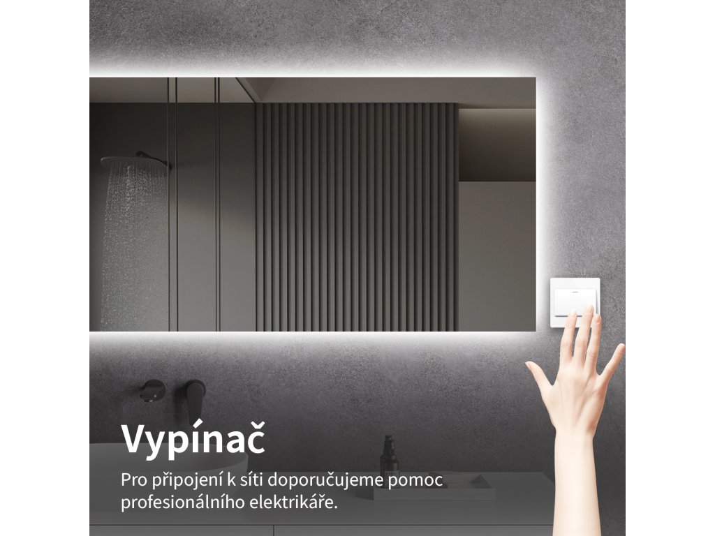 Osvetlenie zrkadla je možné zapnúť cez vypínač na stene. Je nutné napojiť ho priamo na domácu elektrickú sieť. Pred inštaláciou odporúčame obrátiť sa na kvalifikovaného elektrikára, ktorý zaistí správne a bezpečné pripojenie.