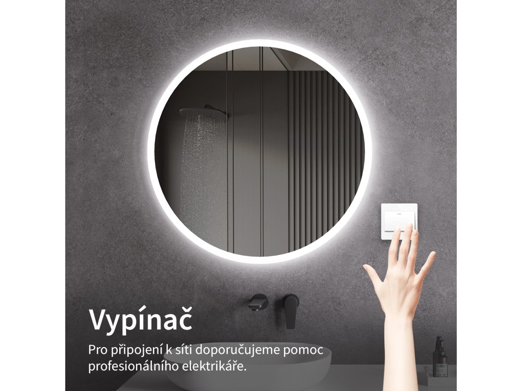Osvetlenie zrkadla je možné zapnúť cez vypínač na stene. Je nutné napojiť ho priamo na domácu elektrickú sieť. Pred inštaláciou odporúčame obrátiť sa na kvalifikovaného elektrikára, ktorý zaistí správne a bezpečné pripojenie.