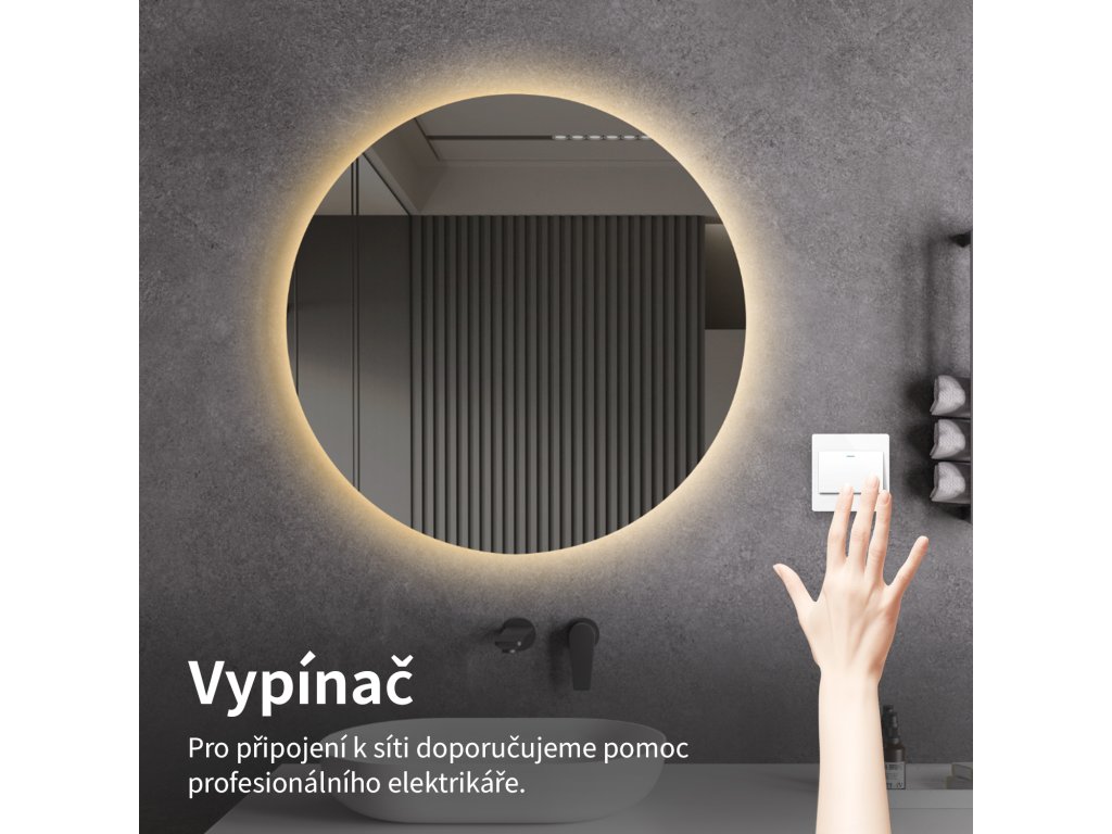 Osvetlenie zrkadla je možné zapnúť cez vypínač na stene. Je nutné napojiť ho priamo na domácu elektrickú sieť. Pred inštaláciou odporúčame obrátiť sa na kvalifikovaného elektrikára, ktorý zaistí správne a bezpečné pripojenie.